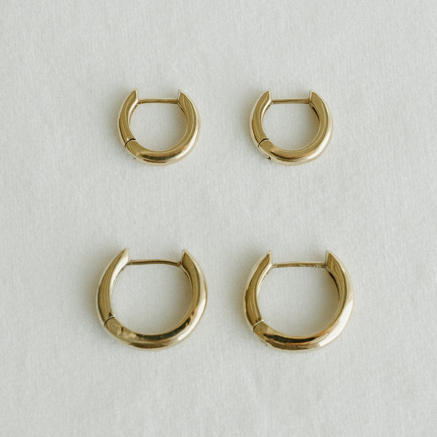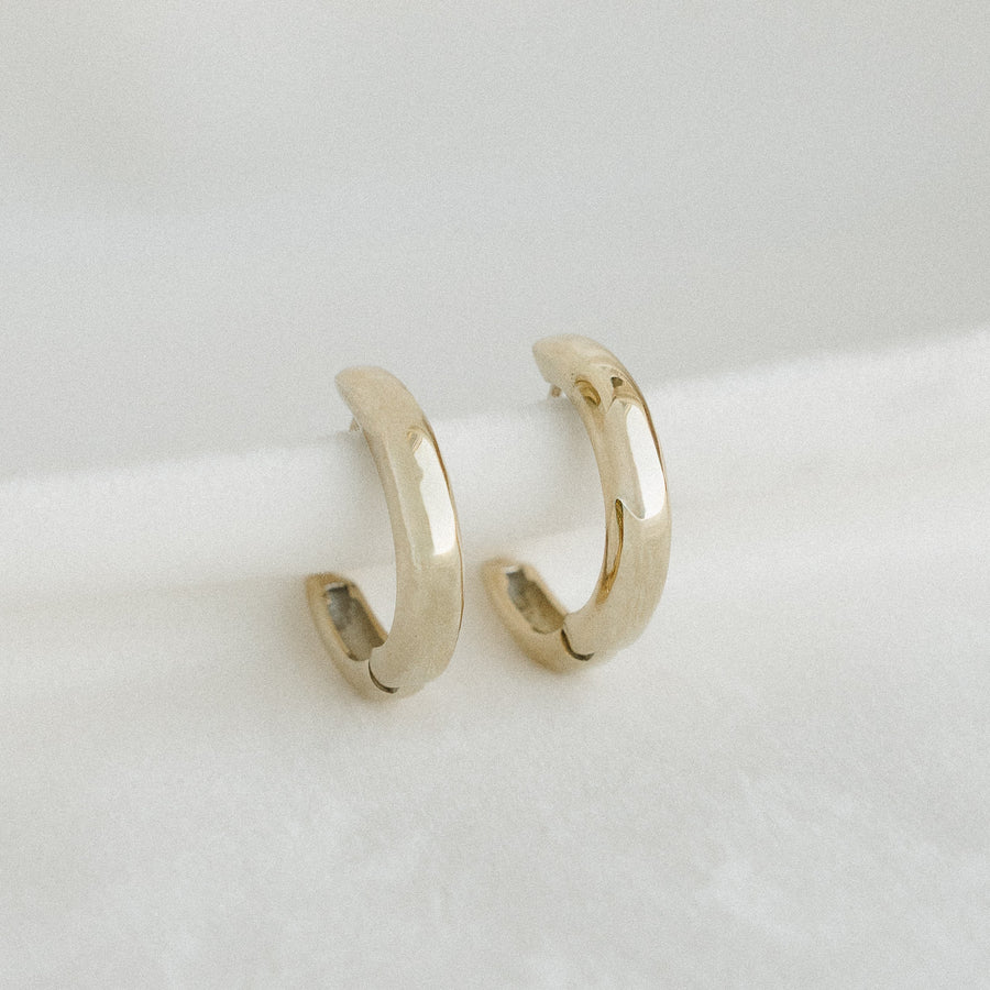 Elegant gold huggie hoops with a smooth, polished finish that reflects light beautifully. Timeless and versatile, they add a touch of sophistication to any outfit. Available in size mini (12mm) & medium (14mm).